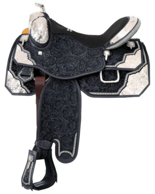 $699.00Western Show Saddle is the ideal choice for shorter backed or petite horses, without compromising on quality, comfort, or aesthetic appeal. Handmade from select hides, this saddle offers exceptional quality and durability. The pommel, horn, and oversized corner plates are all sterling silver plated,